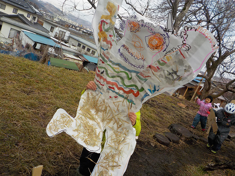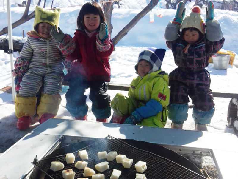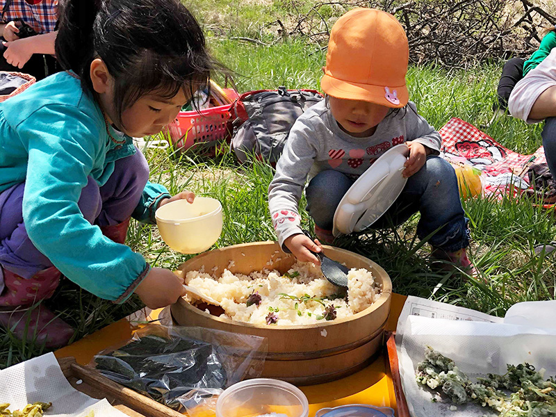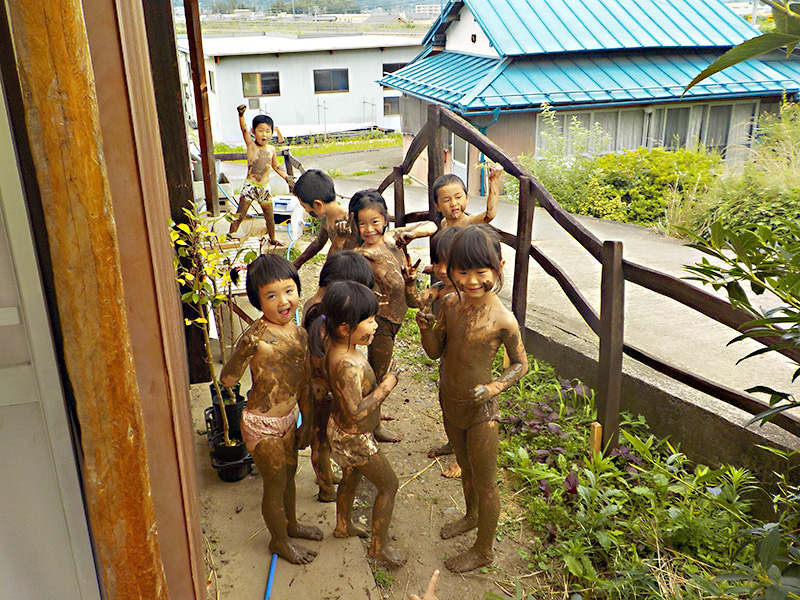 さらには棚田の水源をもつ大池市民の森、そしてその川が流れ込む千曲川の水辺の楽校など様々な場所で、一年を通して、ほとんどを戸外で過ごし、豊かな感性と丈夫な身体を育みます。