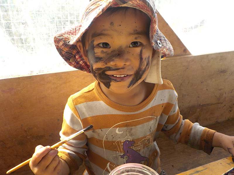 | 好きな遊び かくれんぼ・どろんこ・ごっこあそび・ブランコ・粘土にお絵かきetc… たっぷりな時間の中で自分で考え行動して、仲間ととことん遊びます。時にはみんなで野外料理、工作・畑作業。 こちらから投げかける活動のもとには子どもたちの今の興味関心を見据えます。 |